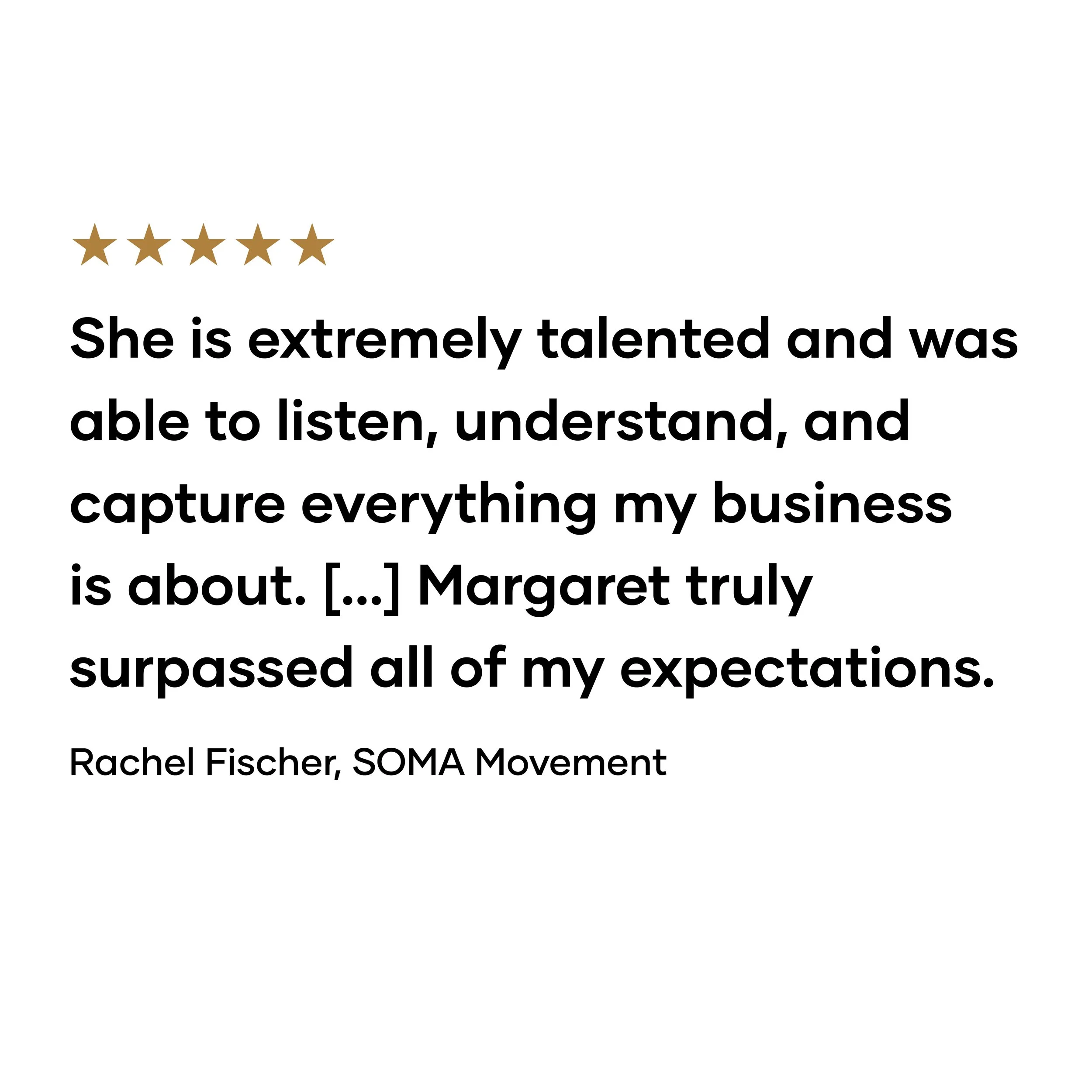 With a background that spans strategy, copywriting, and art direction, Margaret brings a rare blend of creative skills to every client partnership. Today, she uses that big-brand experience to help small and growing businesses stand out—with clear positioning, thoughtful storytelling, and best-in-class design.